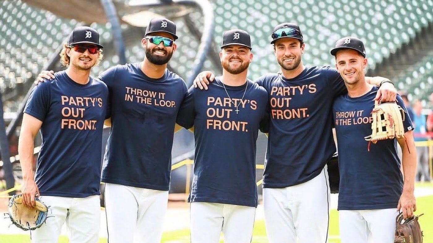 The company already offers shirts for fans (and players, working directly) in a handful of cities, including Pittsburgh, Philadelphia, Boston, and New York. There are also Chicago Bears- and Bulls-inspired shirts and caps, and random other teams. Here are some Detroit Tigers wearing Obvious Shirts.